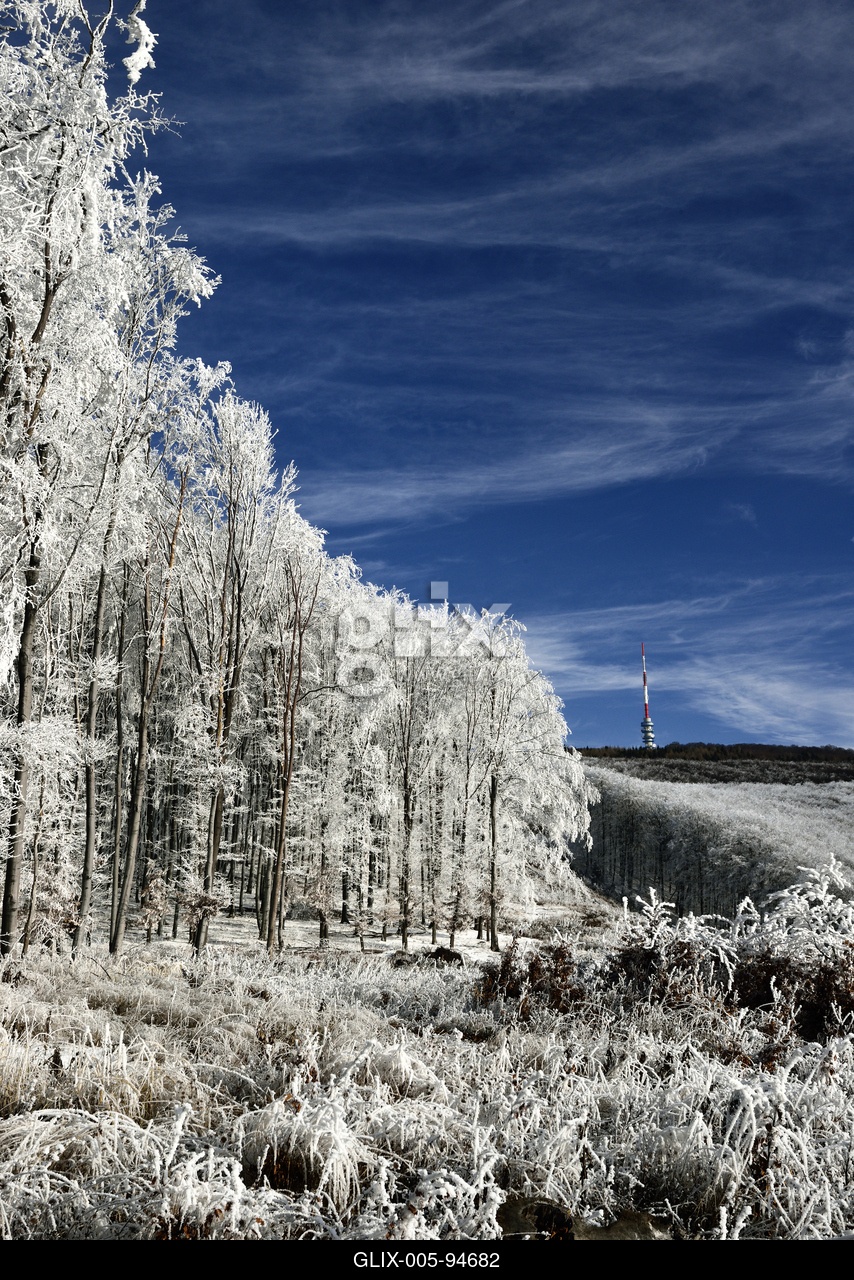 Zúzmarás, havas téli táj a Mátrában, Kékestető közelében.
