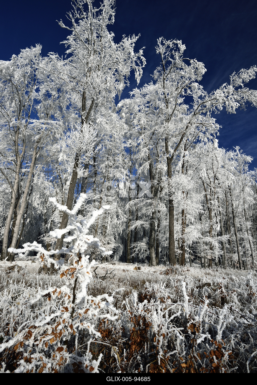 Zúzmarás, havas téli táj a Mátrában, Kékestető közelében.