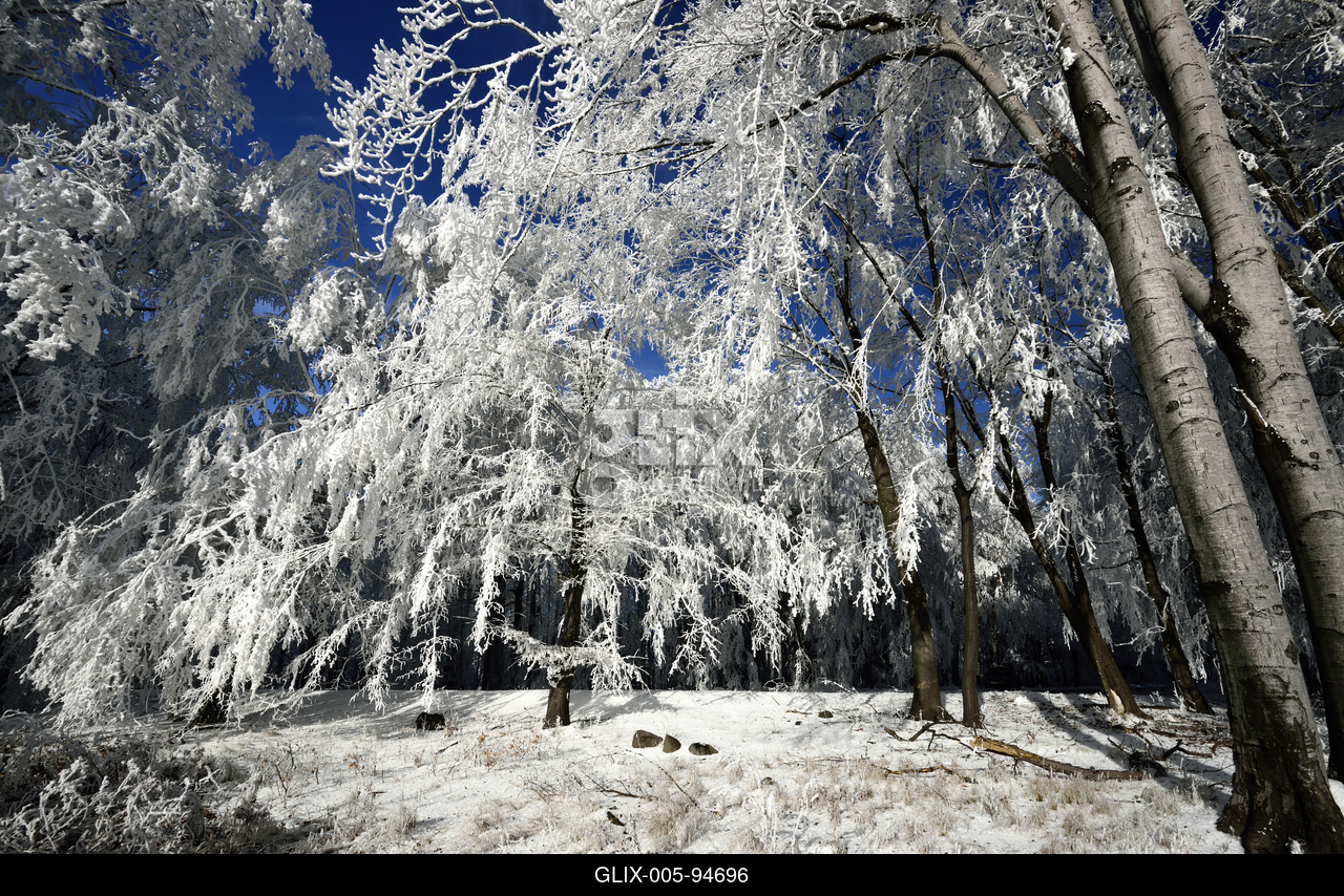 Zúzmarás, havas téli táj a Mátrában, Kékestető közelében.