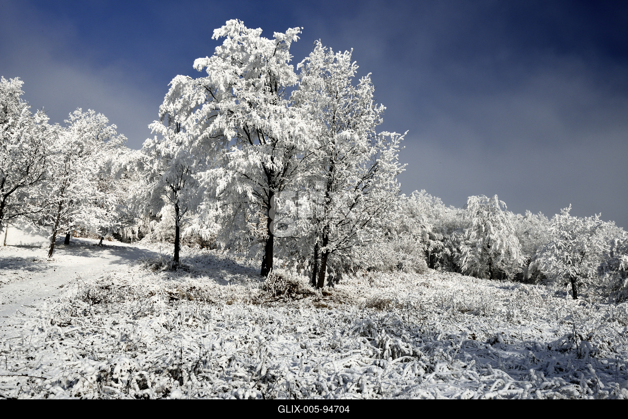 Zúzmarás, havas téli táj a Mátrában, Kékestető közelében.