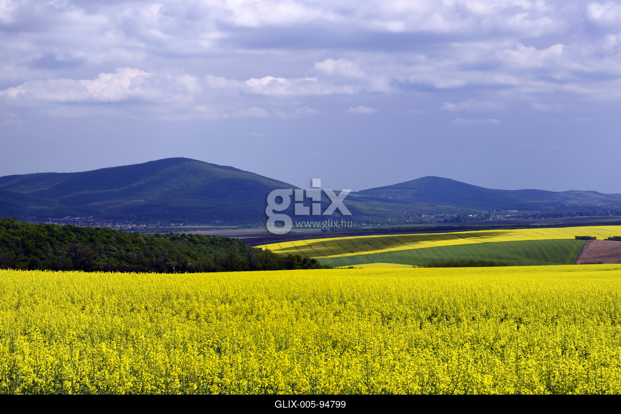 Virágzik a repce a Mátraalján, Tar határában.