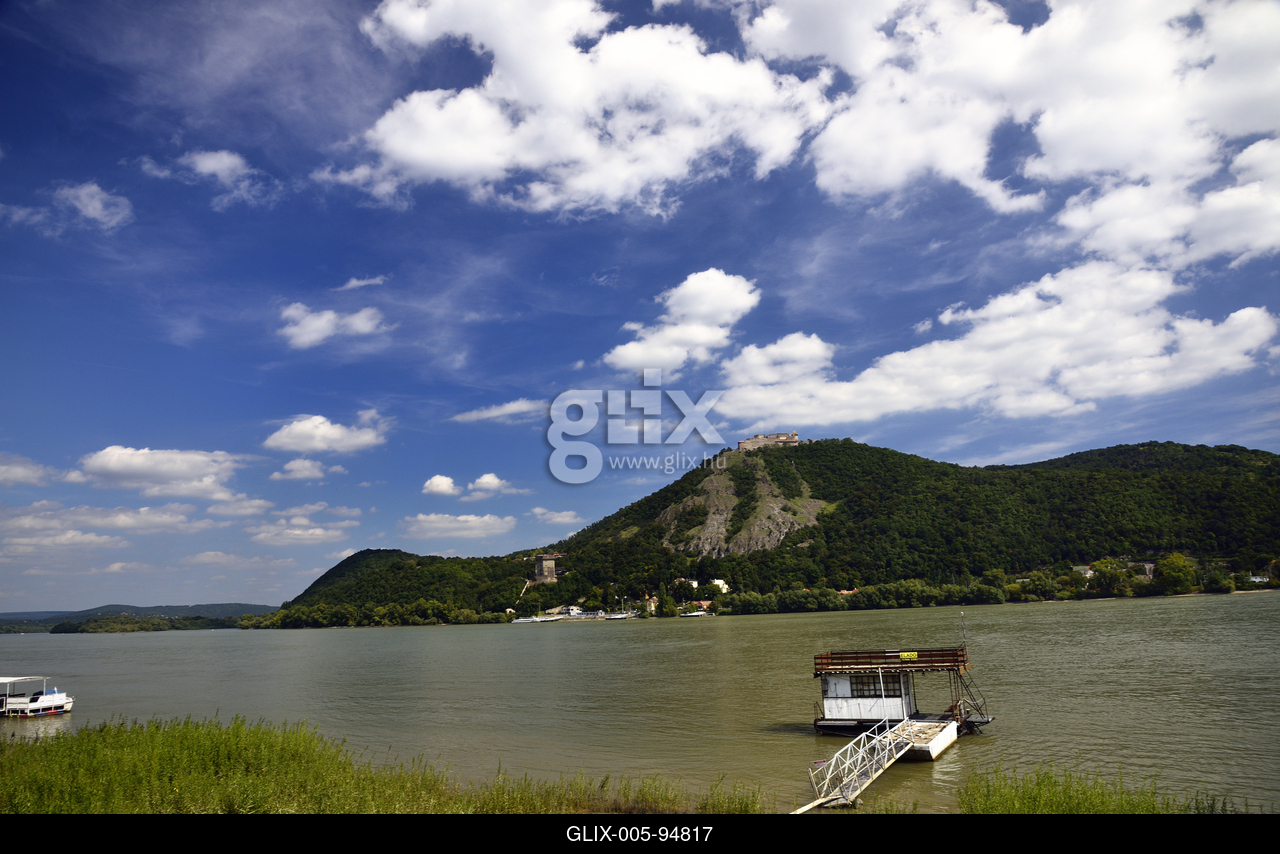 A Visegrádi vár látképe Nagymarosról, a Duna partról.