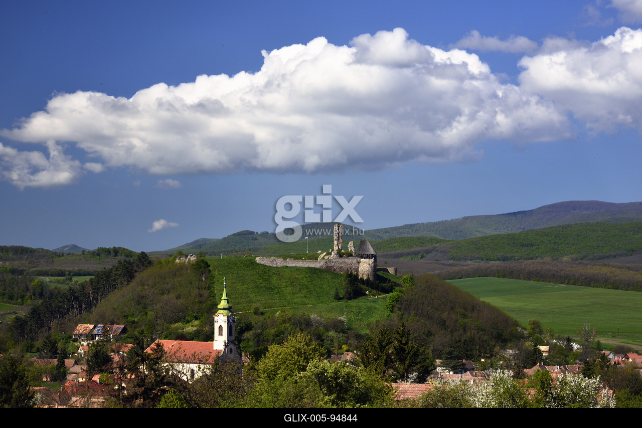 A Nógrád község mellett kimagasodó, nagy területű fennsíkra épült nógrádi vár látképe. A három emelet magas öregtorony csonkja messziről jellegzetessé teszi a nógrádi várromot.