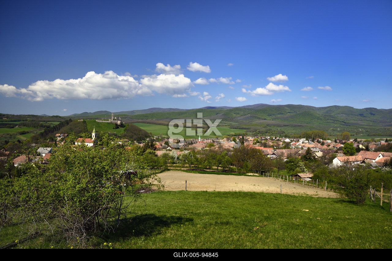 A Nógrád község mellett kimagasodó, nagy területű fennsíkra épült nógrádi vár látképe. A három emelet magas öregtorony csonkja messziről jellegzetessé teszi a nógrádi várromot.