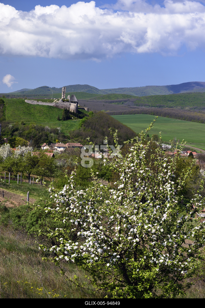 A Nógrád község mellett kimagasodó, nagy területű fennsíkra épült nógrádi vár látképe. A három emelet magas öregtorony csonkja messziről jellegzetessé teszi a nógrádi várromot.