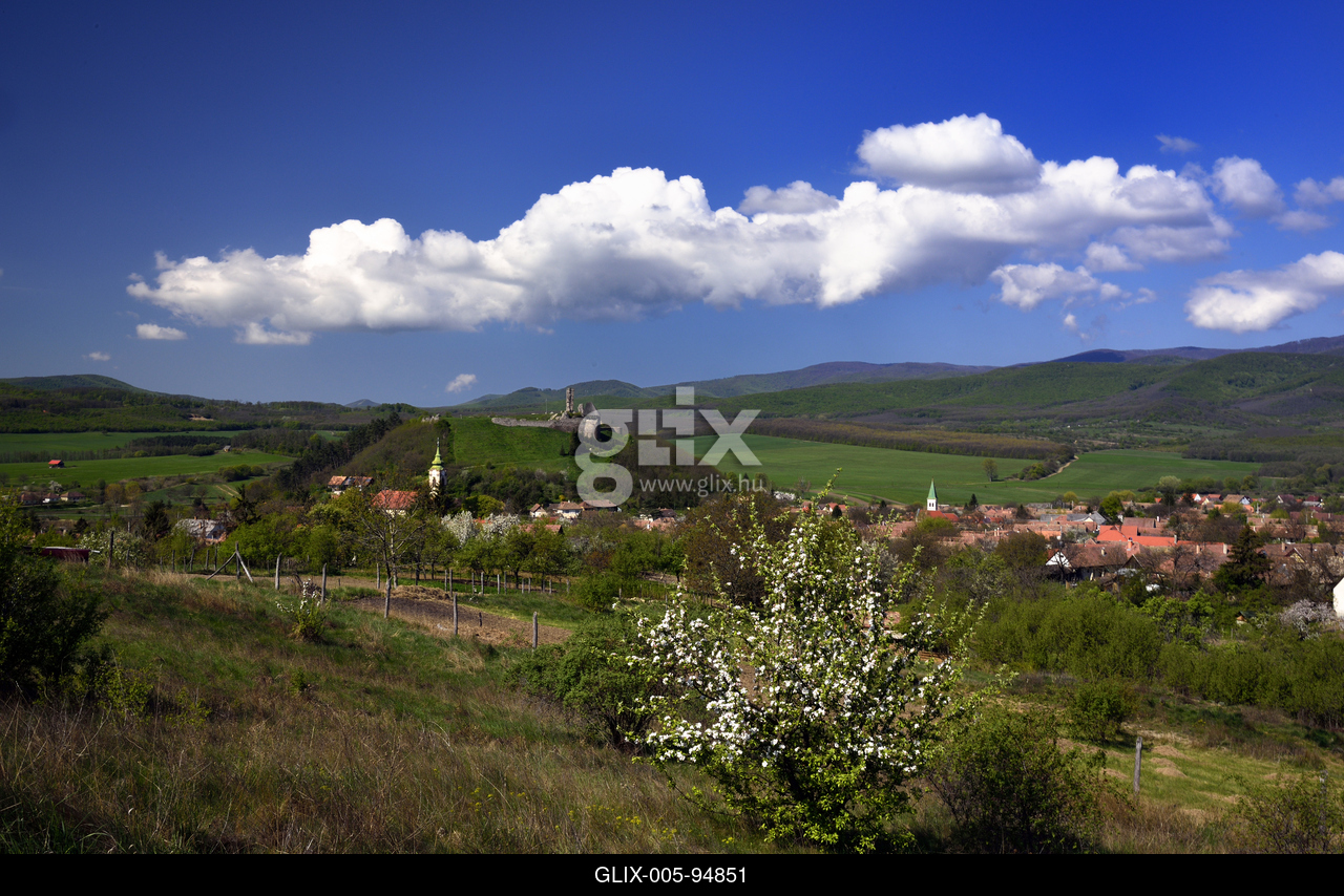 A Nógrád község mellett kimagasodó, nagy területű fennsíkra épült nógrádi vár látképe. A három emelet magas öregtorony csonkja messziről jellegzetessé teszi a nógrádi várromot.