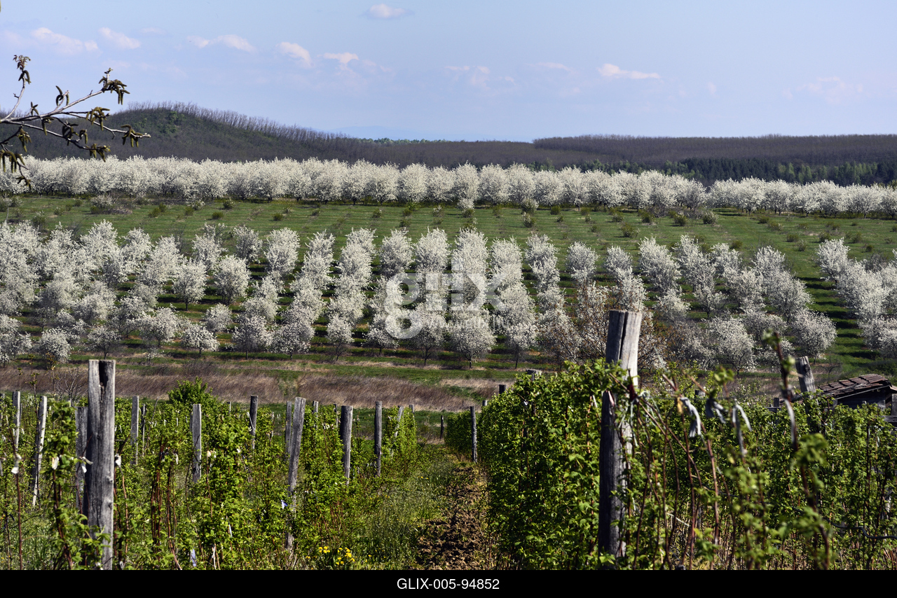 Virágzó gyümölcsfák a Börzsönyben, Nógrád község határában.