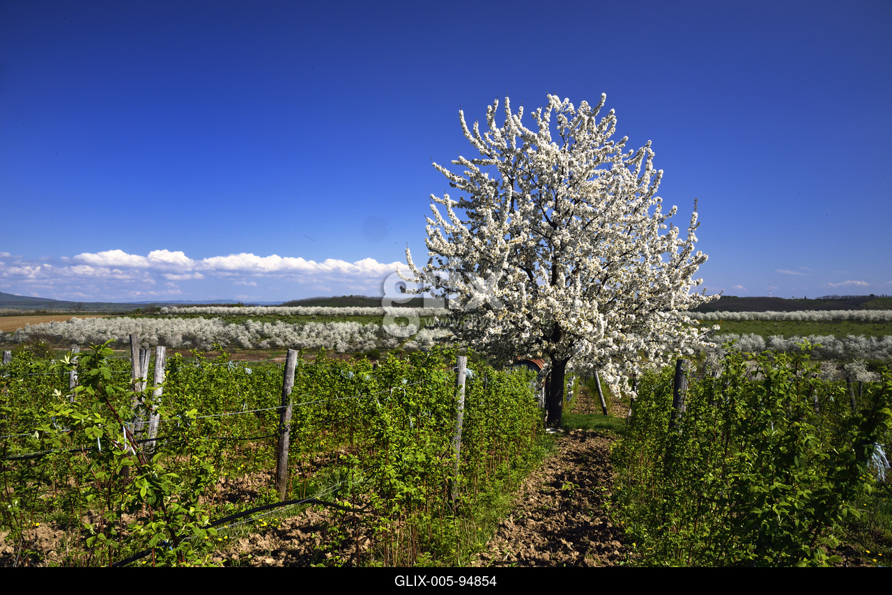 Virágzó gyümölcsfák a Börzsönyben, Nógrád község határában.
