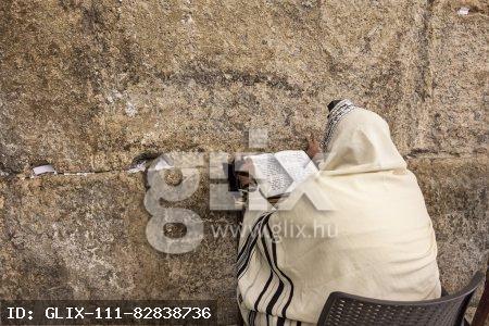JERUSALEM, ISRAEL - JULY 16, 2015: Prayer prays at Western Wall on Tisha B'Av - annual fast day in Judaism, commemorates anniversary of destruction of the First and Second Temples in Jerusalem.