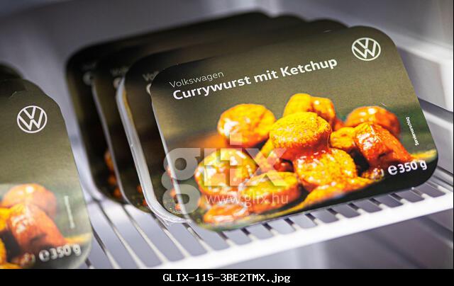 Wolfsburg, Germany. 27th May, 2025. The new Volkswagen currywurst for the microwave is stored in a refrigerator in a hall at the main plant. Credit: Moritz Frankenberg/dpa/Alamy Live News