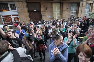 "Megvédjük a Tűzrakteret" - demonstráció-stock-foto
