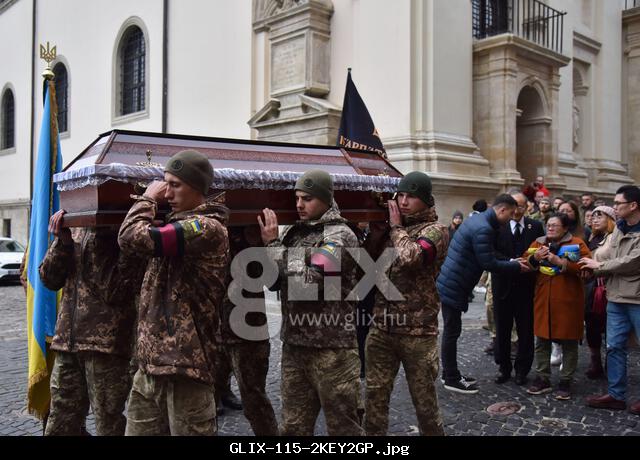 Lviv, Ukraine, 14/11/2022, Soldiers carry the coffin with the body of Tseng Sheng-Guang from the Church of the Holy Apostles Peter and Paul during a farewell ceremony in Lviv. Tseng Sheng-Guang (12.09.1997-02.11.2022) is a native of Taiwan. Graduated from Szu Wei Senior High School in Hualien City. During 2017-2021, he served in the Armed Forces of the Republic of China. Received the military rank of "Corporal". With the beginning of the full-scale invasion of the Russian Federation on the territory of Ukraine, he voluntarily joined the ranks of the Ukrainian Armed Forces. He fought against th